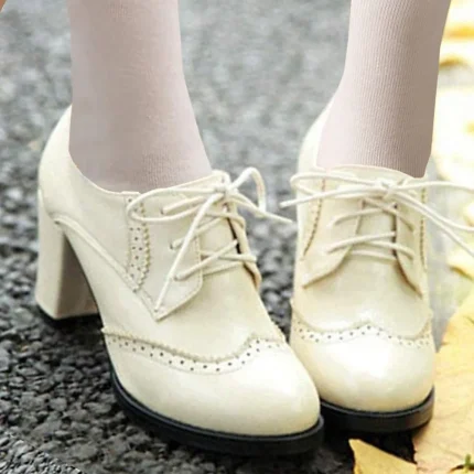 Women’s Vintage Oxford Heels – Lace-Up Brogue Chunky Heel Dress Shoes for Work, Office, and Casual Wear