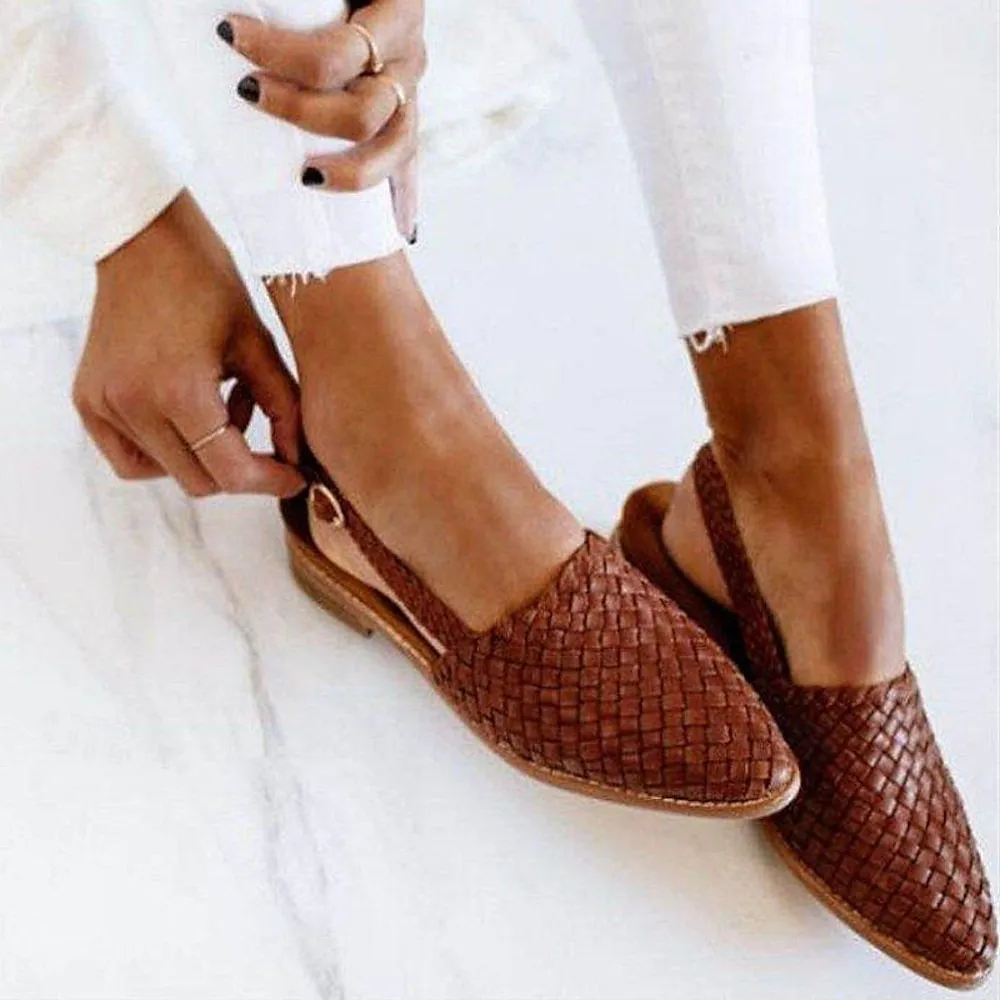 [Fabric] Expertly crafted using premium PU materials, these women’s sandals promise durability and comfort, making them suitable for all-day wear during the warm seasons of spring and summer. The soft texture of the PU upper ensures a gentle fit on the foot, while providing a chic appearance.[Shape] These flat sandals are designed with a low heel for comfort, offering a pointed toe silhouette that combines elegance with relaxation. The classic loafer-inspired design integrates seamlessly with the comfortable fit, catering to both style and ease of movement.[Design Highlights] Featuring an intricately woven basket pattern, these sandals exude sophistication and uniqueness. The slip-on style enhances convenience, making them perfect for quick wear while maintaining an elegant profile. Available in a variety of colors, including almond, black, and white, these sandals can complement any outfit with ease.[Occasions] Perfect for beach outings, casual gatherings, or even leisurely strolls, these flat sandals offer versatility and style. Whether paired with a summer dress or casual shorts, they add a touch of refinement to any ensemble, making them suitable for both laid-back and slightly formal occasions.[Size Notice] These women’s sandals are available in a range of sizes, from US5.5 / EU35 / UK3.5 to US10.5 / EU42 / UK8.5, ensuring a fit for various foot sizes. We recommend selecting your usual size for optimal comfort and fit.OK