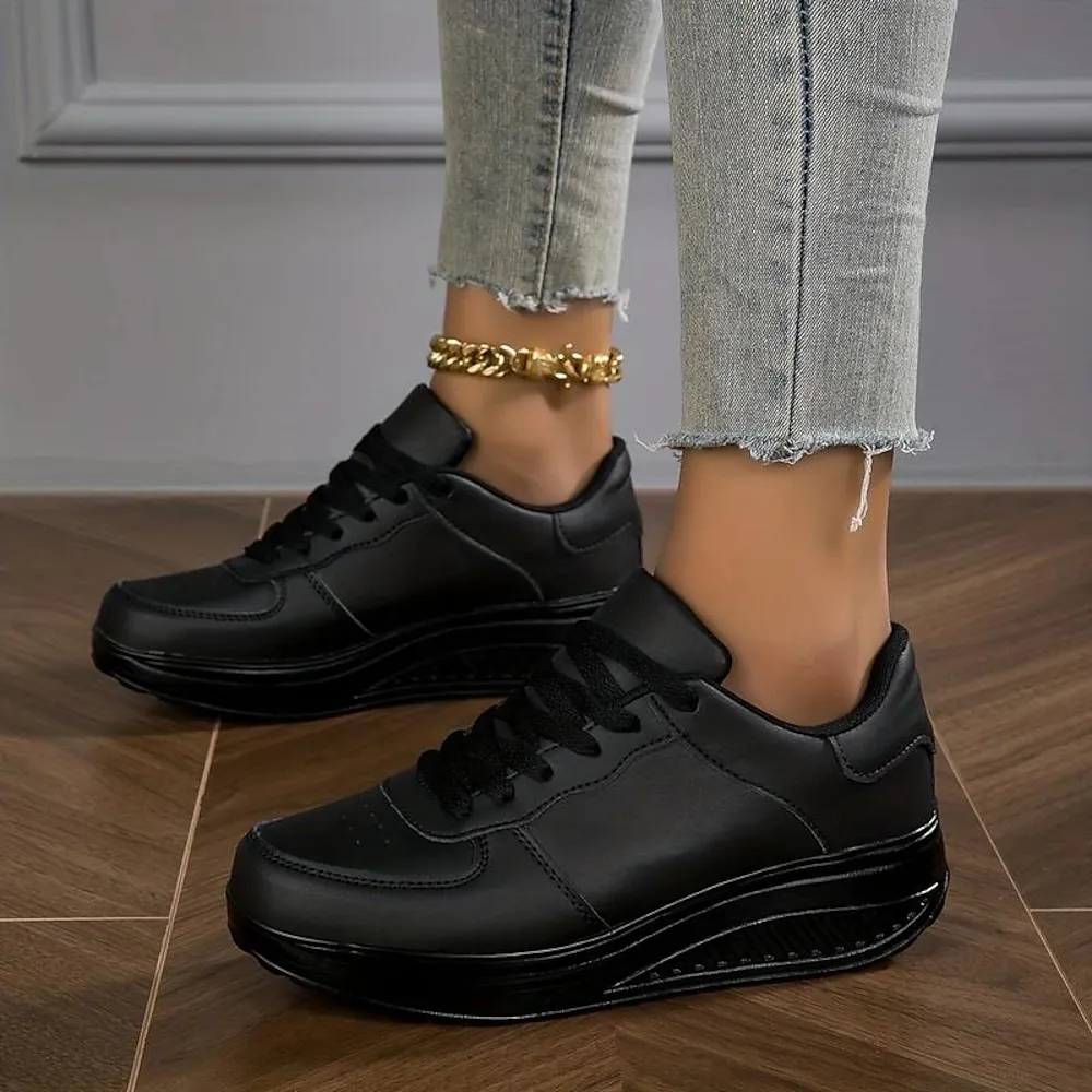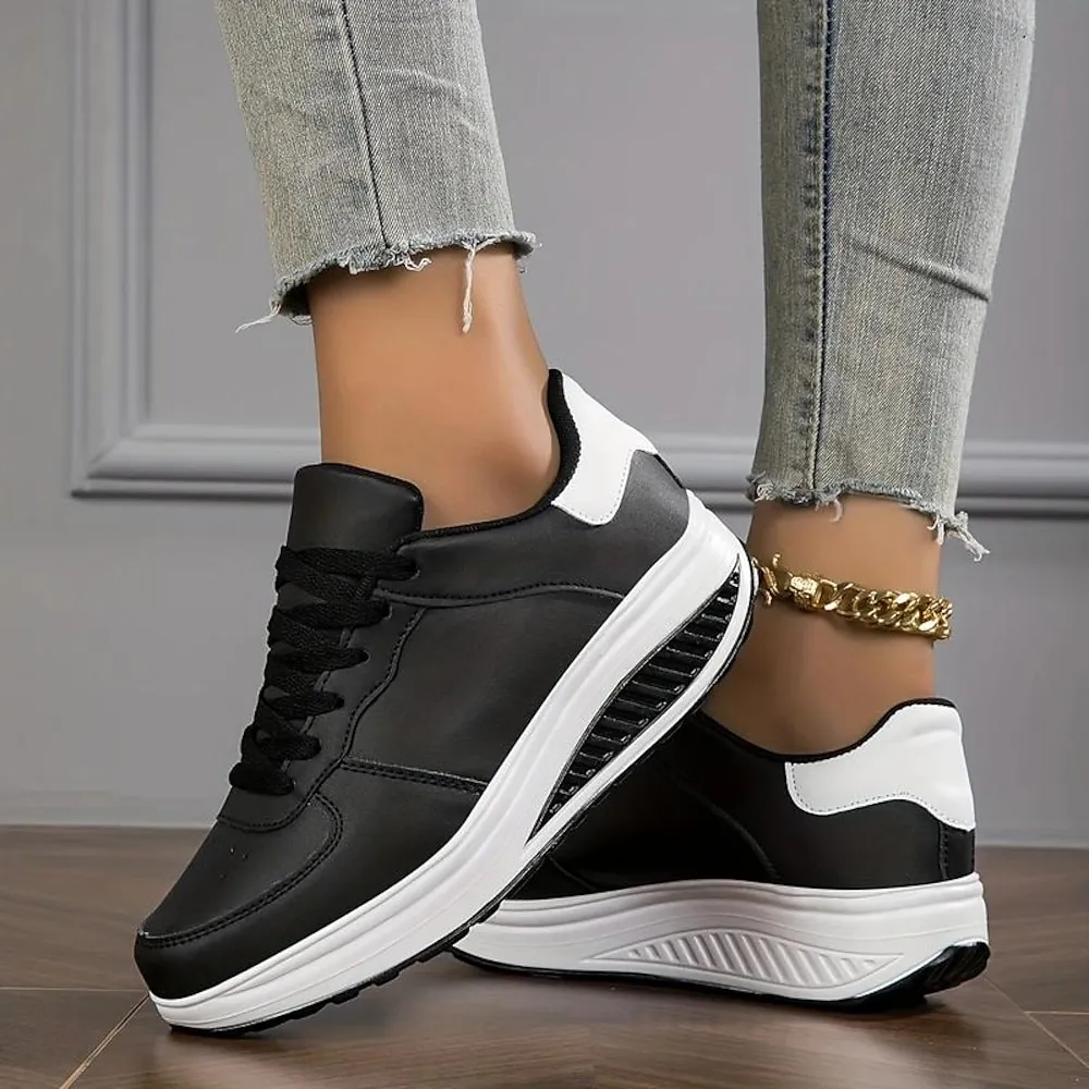[Luxurious Faux Leather Construction] These women’s platform sneakers are crafted with high-quality PU material, providing a sleek and smooth finish. The faux leather ensures durability while maintaining a fashionable edge. [Style and Comfort in Every Step] Featuring a platform heel, these sneakers provide an added height boost without sacrificing comfort. The MD (Phylon) outsole offers excellent grip and stability, making it ideal for walking and everyday activities.[Chic Design Elements] The modern lace-up closure offers a secure and adjustable fit, while the minimalist design is complemented by a variety of color options including White, Black, Gray, Rose Pink, Black/White, Black/Red, and Pink/Grey.[Versatile for Any Occasion] Perfect for daily wear, outdoor adventures, and casual gatherings. These sneakers seamlessly blend with both sporty and fashionable outfits, making them an essential addition to your wardrobe across all seasons — spring, summer, fall, and winter.[Available Sizes] Offered in a comprehensive size range from US5.5 to US10.5, these sneakers cater to a wide variety of feet. Ensure the perfect fit with sizes including EU35 to EU42, UK3.5 to UK8.5, and CN35 to CN43, providing a comfortable option for every wearer.OK