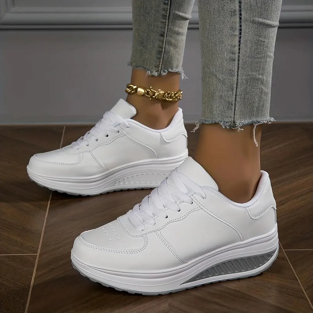 Women’s Platform Sneakers – Stylish White Lace-Up Shoes with Air Cushion for Walking & Casual Wear