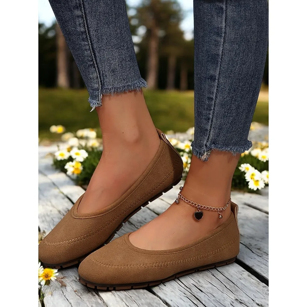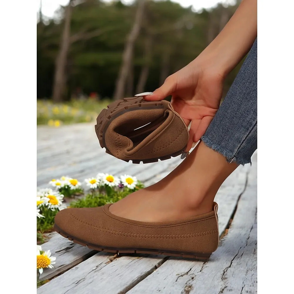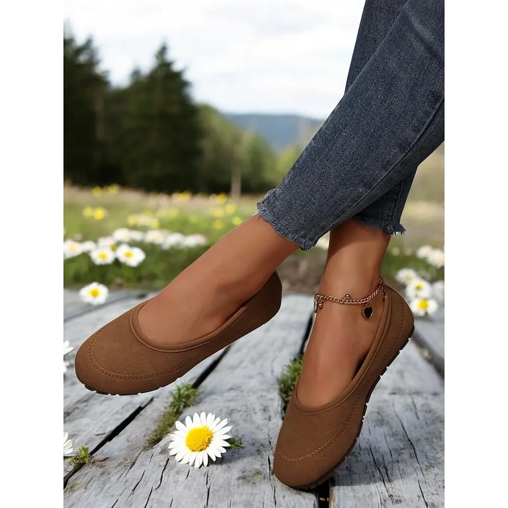 Women’s Wide Toe Barefoot Flats in Brown – Comfortable Zero Drop Slip-On Shoes for Casual Walking & Travel